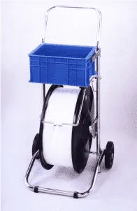 Устройство с посадочным местом для бухты ленты ПП, предназначено для удобства перемещения и разматывания ленты с ящиком для инструмента и крепежных материалов, предназначено для удобства перемещения и разматывания ленты