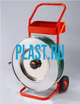 Передвижное устройство с посадочным местом для ленты ПЭТ или металлических лент с ящиком для инструмента и крепежных материалов, предназначено для удобства перемещения и разматывания ленты. Используется для бухт ленты с внутренним диаметром 405мм, внешним диаметром не более 700мм и шириной 300мм