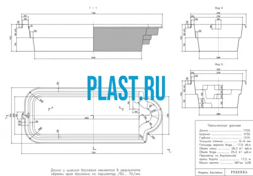 Композитный бассейн "Ребекка" имеет длину 7,7 метра, ширину 3,2 метра и глубину 1,55 метра. Объем бассейнаОгромный склад - почти все в наличии!