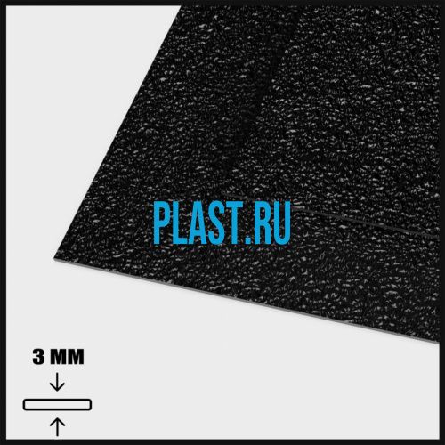 Лист АБС 3х1000х3000мм (9,54 кг) Черный Кожа крупная (Z6)