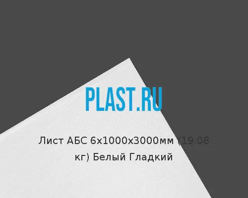 Лист АБС 6х1000х3000мм (19,08 кг) Белый Гладкий