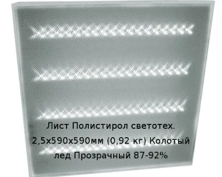 Лист Полистирол светотех. 2,5х590х590мм (0,92 кг) Колотый лед Прозрачный 87-92%