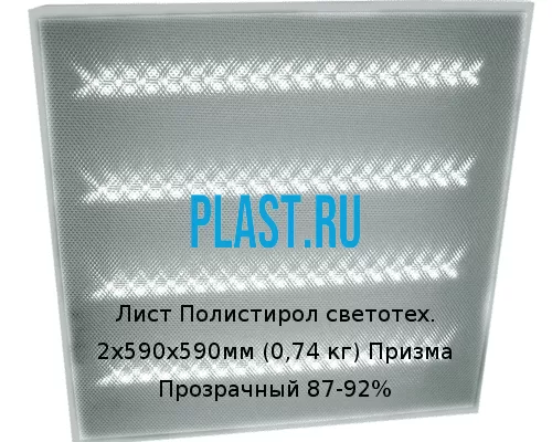Лист Полистирол светотех. 2х590х590мм (0,74 кг) Призма Прозрачный 87-92%