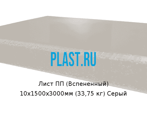 Лист ПП (Вспененный) 10х1500х3000мм (33,75 кг) Серый