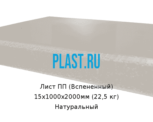 Лист ПП (Вспененный) 15х1000х2000мм (22,5 кг) Натуральный
