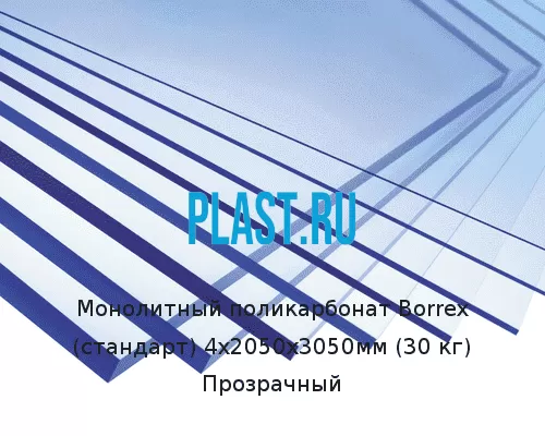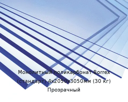 Монолитный поликарбонат Borrex (стандарт) 4х2050х3050мм (30 кг) Прозрачный