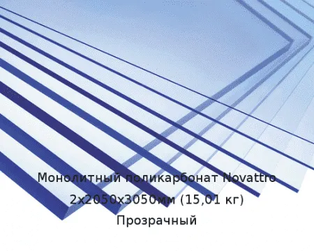 Монолитный поликарбонат Novattro 2х2050х3050мм (15,01 кг) Прозрачный