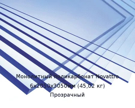 Монолитный поликарбонат Novattro 6х2050х3050мм (45,02 кг) Прозрачный