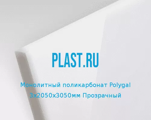 Монолитный поликарбонат Polygal 3х2050х3050мм (22,51 кг) Прозрачный