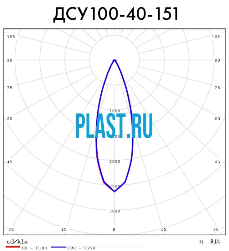Артикул: ДСУ100-40-151. Оптика: 30°, Световой поток - 4127 Лм.