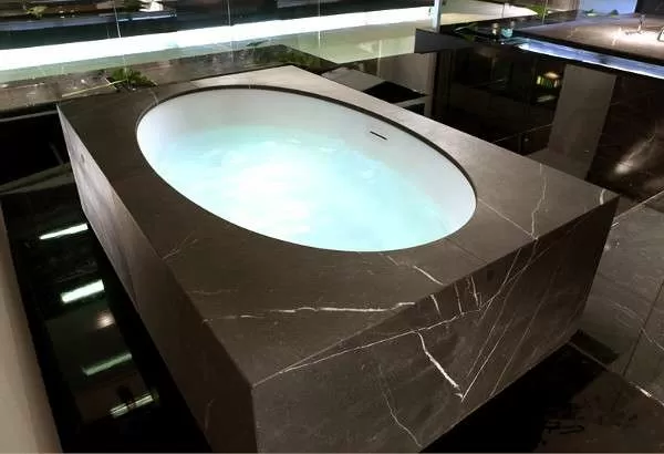 Кроме того, ванные из искусственного камня на основе полимеров также выглядят красиво, действительно похожи на камень, могут иметь причудливые формы. Пожалуй, основным недостатком такой ванной является ее цена, что неудивительно, учитывая все основные достоинства. Таким образом, теперь качественные ванные используют полимерную продукцию.