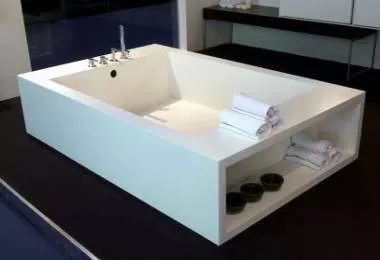 Но есть материал, который считается одним из лучших в этой отрасли — искусственный камень. От настоящего камня там только название и (иногда) внешний вид. Создаются такие ванные, на основе сочетания песка или крошки натурального камня, вместе с полиэфирными смолами, катализаторами и пластификаторами. Такая купель весит намного меньше чем чугунная ванная, но достаточно много, чтобы полностью исключить лишний шум от струй воды. Ванная подобного типа «не боится» домашних животных, и вообще намного более устойчива к повреждениям, как химическим, так и физическим.